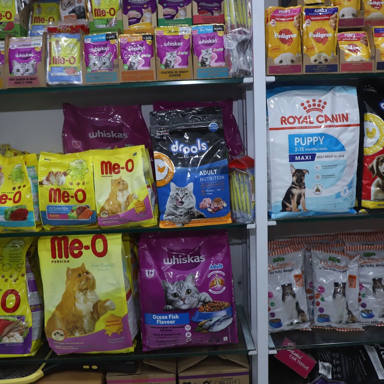 At Max Enterprises, we are dedicated to providing the best care for your furry companions. Located in Ghatkopar East, Mumbai, we specialize in premium pet products that ensure health, happiness, and comfort for cats and dogs. We proudly serve trusted brands like Pedigree, Whiskas, and Royal Canin, offering a wide range of high-quality pet essentials. Our collection includes nutritious cat food, dog food, grooming shampoos, creams, toys and accessories to meet every need of your beloved pets.